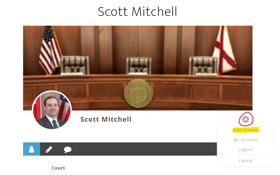To update your profile, click on the gear icon in the top right corner and then “Edit Profile.”
